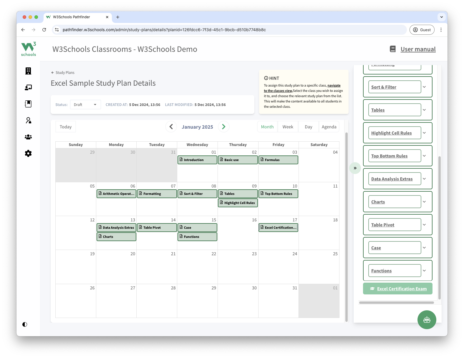 This study plan is a feature of W3Schools Academy.
